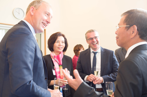 | Lãnh đạo Vinamilk cùng ông Nguyễn Trường Thanh - Đại sứ đặc mệnh toàn quyền Việt Nam tại Vương quốc Đan Mạch đang trao đổi tại lễ ký kết. |