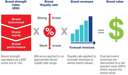 Được biết, các phương pháp định giá “Royalty relief” được dựa trên tiêu chí gồm khả năng làm tăng giá trị sản phẩm của một thương hiệu, mức độ ảnh hưởng đối với quyết định mua của khách hàng, chi phí để xây dựng thương hiệu thành công, giá trị mua bán trên thị trường chứng khoán, và khả năng tạo ra lợi nhuận của thương hiệu. Như vậy, các con số giá trị thương hiệu không chỉ được tính toán từ giá trị quá khứ mà còn dựa trên cơ hội và tiềm năng phát triển, độ nhận biết của người tiêu dùng…