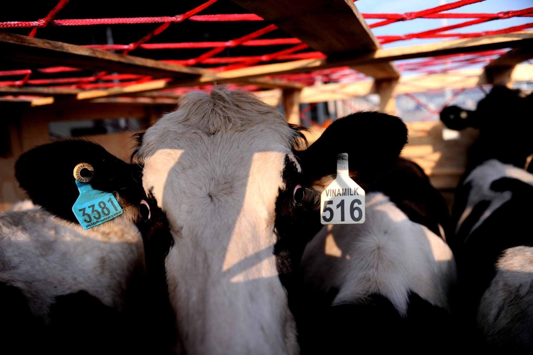 Những “cô bò” đầu tiên lên xe về trang trại mới của Vinamilk tại Thanh Hóa. Để đảm bảo đàn bò nhập về được khỏe mạnh, sản xuất sữa có chất lượng và năng suất cao, tại trang trại Thanh Hóa, các chuyên gia sẽ thực hiện đầy đủ các biện pháp như nuôi cách ly để theo dõi đủ thời gian, sau đó mới được nhập đàn. Chuyên gia và bác sĩ thú y sẽ khám bệnh hàng ngày cho bò và theo dõi lấy mẫu sữa để kiểm tra theo đúng quy trình. |