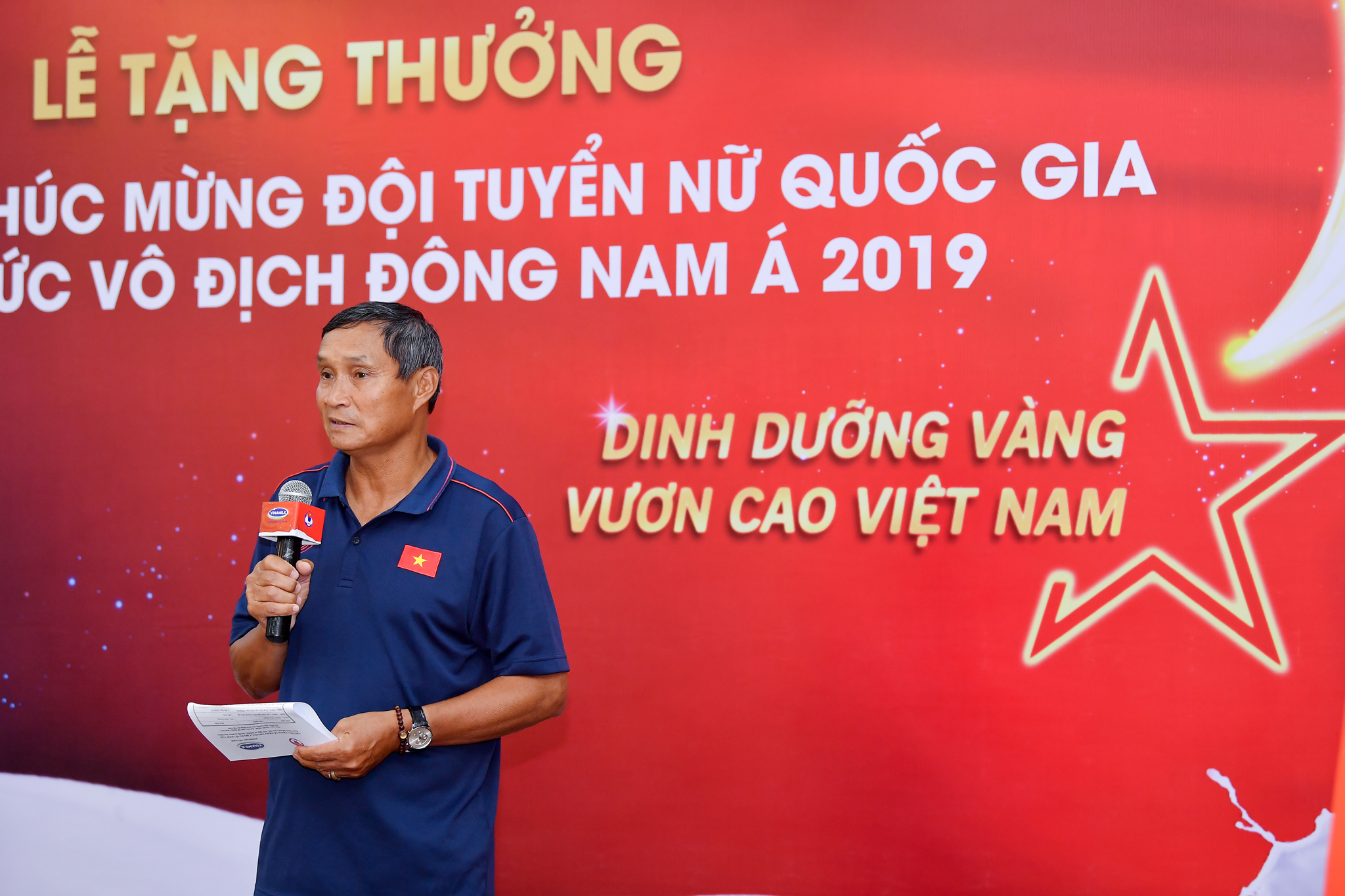 Giám đốc Điều hành Marketing và Kinh doanh của Vinamilk, ông Phan Minh Tiên chia sẻ tại buổi lễ: “Ban lãnh đạo và tập thể CB-CNV Công ty rất vui mừng và tự hào với chức Vô địch Đông Nam Á của Đội tuyển Nữ bóng đá quốc gia đạt được. Cảm ơn các bạn, những cô gái vàng của Việt Nam với tinh thần thi đấu quả cảm, hết mình vì màu cờ sắc áo và sự tin yêu của hàng triệu người hâm mộ Việt Nam. Hy vọng trong thời gian tới, Đội tuyển sẽ tiếp tục gặt hái được những thành tích tốt hơn trong hành trình đưa Bóng đá Việt Nam chinh phục những đỉnh cao mới - Vì Một Việt Nam Vươn Cao!”