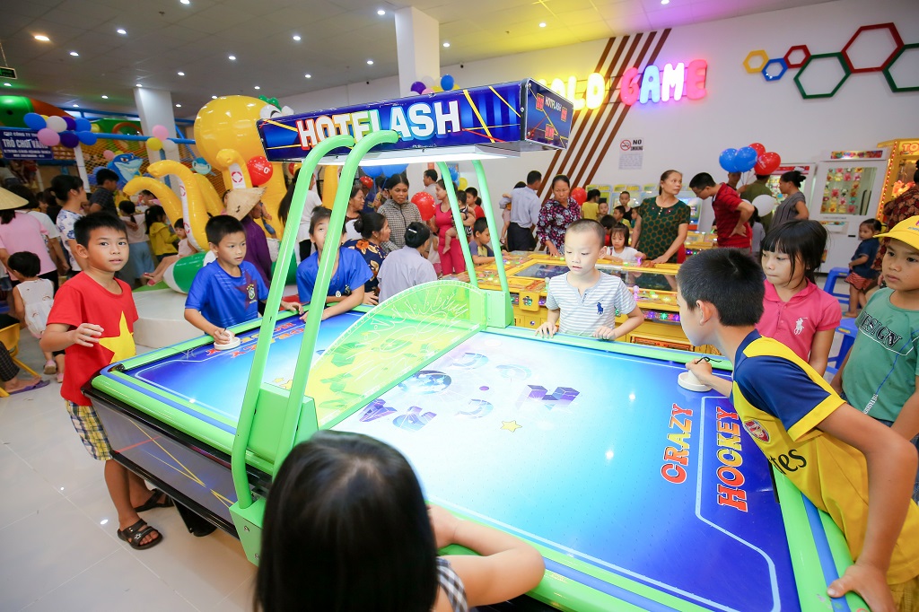 Các em nhỏ tỏ ra đặc biệt thích thú với trò hockey tại khu vui chơi Gold Game |