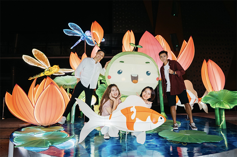 Trong khi đó, các gia đình ở TP. Hồ Chí Minh có thể lưu lại những hình ảnh hạnh phúc của mùa trung thu đoàn viên với tiểu cảnh tạo hình “Cá chép hồ sen” cùng muôn sắc đèn lồng rực rỡ đặt tại sảnh TTTM Vincom Center Landmark 81. Cũng tại đây, sẽ diễn ra màn flashmob ngộ nghĩnh “Mầm xanh gọi trăng” với sự xuất hiện của “Biệt đội Bé Mầm” – những đại diện cho mong ước về một thế hệ mới – nhân tố cốt lõi để thúc đẩy cộng đồng cùng hành động bảo vệ môi trường sống.
