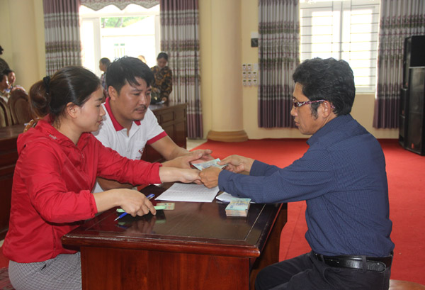 Chi trả hỗ trợ người lao động không có giao kết hợp đồng lao động bị mất việc làm do dịch bệnh Covid-19 trên địa bàn xã Tử Du, huyện Lập Thạch. |