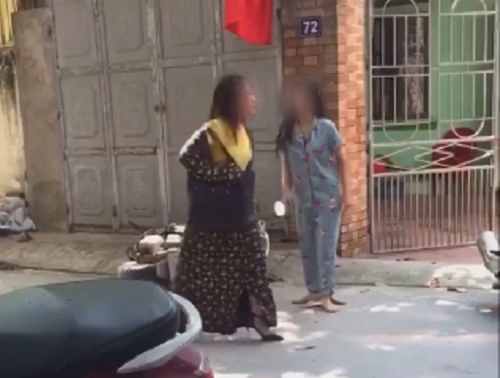 Vào thời điểm này, một người phụ nữ mặc váy chống nắng (được cho là vợ) đứng khóc lóc giữa khu dân cư, mặt chảy đầy máu. Chị này lớn tiếng tranh cãi với 1 cô gái mặc bộ đồ màu xanh (được cho là cô bồ nhí), tuy nhiên từ đầu đến cuối đều bị cô gái trẻ mắng chửi lấn lướt. Cô gái này còn giằng co, giật tóc chị vợ lôi ngược về phía sau, sau đó một tay chống nạnh, một tay chỉ trỏ chửi bới lớn tiếng.