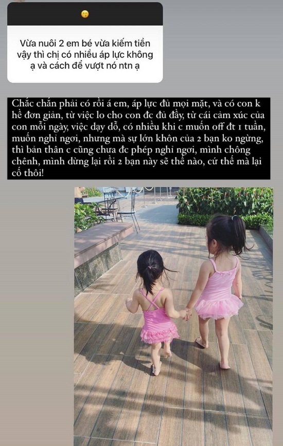 Chia sẻ của bà mẹ hai con đang thu hút sự chú ý của công chúng. Bảo Ngọc trải qua một cuộc hôn nhân tan vỡ và hiện cô đang dành hết thời gian để làm mẹ đơn thân, chăm sóc 2 con gái. Hậu ly hôn, Hoài Lâm và Bảo Ngọc tuy không nhắc gì nhiều về nhau nhưng mọi động thái của cặp đôi trên trang cá nhân vẫn được cư dân mạng quan tâm theo dõi.