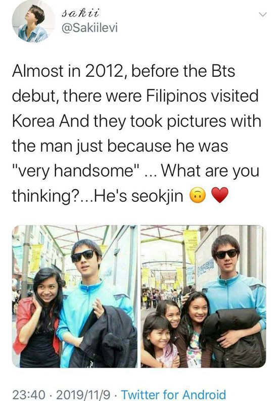 Chia sẻ mới đây của cô nàng may mắn có bức hình chụp với Jin từ 7 năm trước khiến nhiều fan BTS hâm mộ, ghen, tỵ, hận.