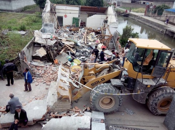 Các thành viên mạng xã hội QQ của Trung Quốc vô cùng sửng sốt trước hành động của anh con rể "bá đạo" trên. Vào ngày 17/5 vừa qua, 12 thành viên của gia đình nhà ông Lý hoảng hốt khi bỗng nhiên nóc nhà bị sập xuống, ngay sau đó là một chiếc xe ủi cỡ lớn lao thẳng vào trong nhà. Cả nhà phải chạy vào trong nhà vệ sinh để ẩn nấp.
