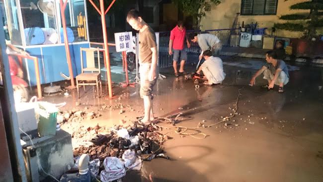 Trước đó 1 ngày đường ống nước sạch sông Đà (do Vinaconex làm chủ đầu tư) vỡ tại điểm Big C.