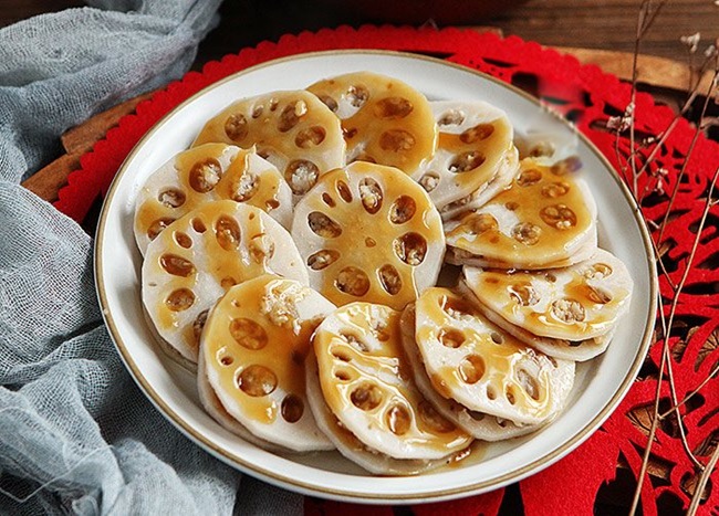 - Làm nước sốt: Hòa nửa bát con nước với 1 thìa cà phê tinh bột, nước tương nhạt rồi đổ vào nồi nấu thành sệt lại. Cuối cùng đổ nước sốt đã nấu lên trên các lát củ sen đã hấp rồi thưởng thức!