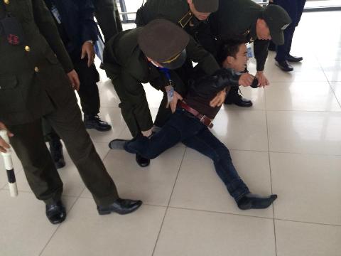 Nam thanh niên bị lực lượng an ninh khống chế. (Ảnh: otofun). |