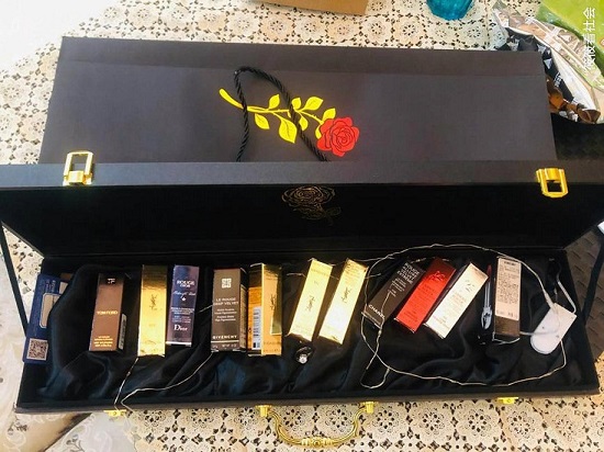 Mới đây, một người phụ nữ ở tỉnh Hà Nam, Trung Quốc trong lần dắt thú cưng đi dạo đã vô tình phát hiện trong thùng rác bên đường có một hộp quà được thiết kế đẹp mắt, tinh xảo. Vì tò mò nên cô đã mở hộp quà ra xem và thấy bên trong là những bông hoa sáp màu xanh được xếp rất đẹp cùng 11 thỏi son.