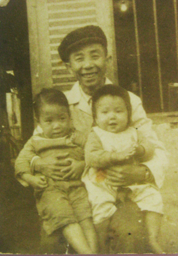 | Võ sư Trần Hưng Quang bên hai con nhỏ (ảnh tư liệu). |