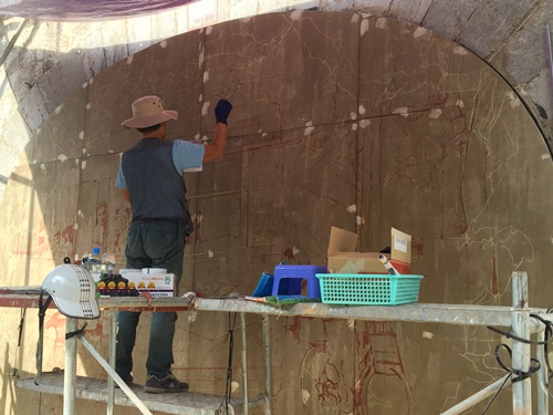 Để các bức bích họa có thể bền lâu hơn trong khoảng 5 năm thì ngay cả màu sơn cũng được tính toán rất kỹ. |
