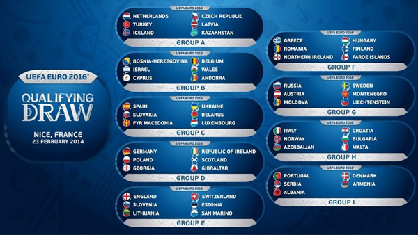 Khó khăn với đội tuyển Hà Lan khi họ rơi vào bảng A cùng với những đối thủ đáng gờm như CH Czech, Thổ Nhĩ Kỳ, Latvia, Iceland và Kazakhstan. Chung số phận là ĐT Bồ Đào khi nằm tại bảng I cùng Đan Mạch, Serbia, Armenia và Albania.
