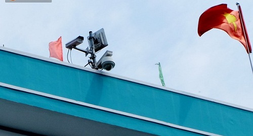 Theo quan sát của chúng tôi, camera được gắn phía mặt tiền trên lầu cao của trường THCS Lê Lợi có hướng quan sát về phía vòng xoay Dân Chủ, đồng thời cũng là hướng chính diện với vị trí xảy ra vụ án mạng kinh hoàng.