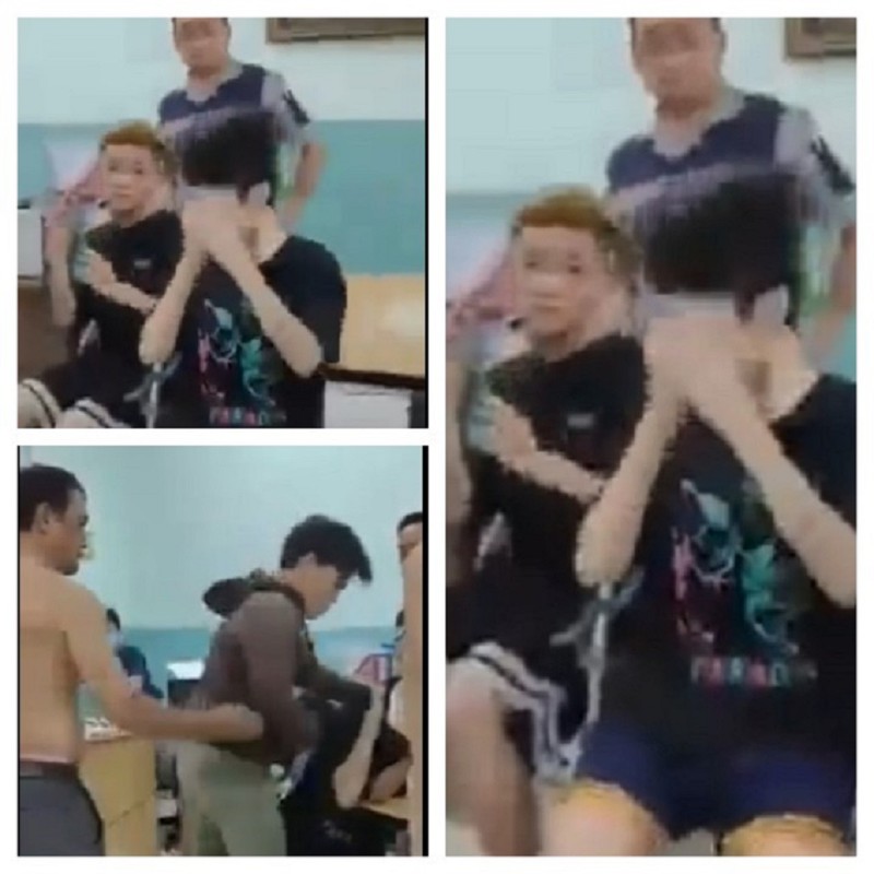 Hai thiếu niên bị đánh trong trường THCS Ngô Văn Tố. Ảnh: Pháp luật TP.HCM |