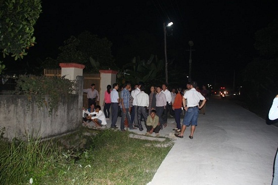 Người dân tập trung ngoài đường lớn đón thi thể 4 nạn nhân bị điện giật tử vong. Ảnh: VietNamnet |