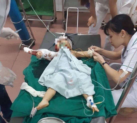 Cháu bé hơn 1 tuổi khi được cấp cứu trong bệnh viện. |