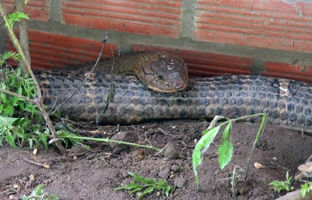 Trước đó, ngày 14/5, trao đổi trên VnExpress, ông Lê Nguyễn Hoàng Anh Duy - Giám đốc dự án điện năng lượng mặt trời tại xã An Hảo, huyện Tịnh Biên, An Giang cho biết, hai tháng trước, trong lúc san ủi mặt bằng rậm rạp dưới chân núi Cấm, các công nhân đã phát hiện cặp rắn hổ mây lớn, nên dùng bao bố và lưới vây bắt.