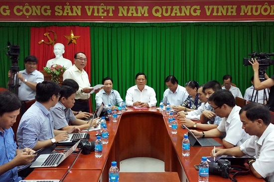 Họp báo công bố thông tin ban đầu vụ án "Sản xuất, buôn bán hàng giả" liên quan đến "đại gia" Trịnh Sướng. Ảnh: Lao Động |