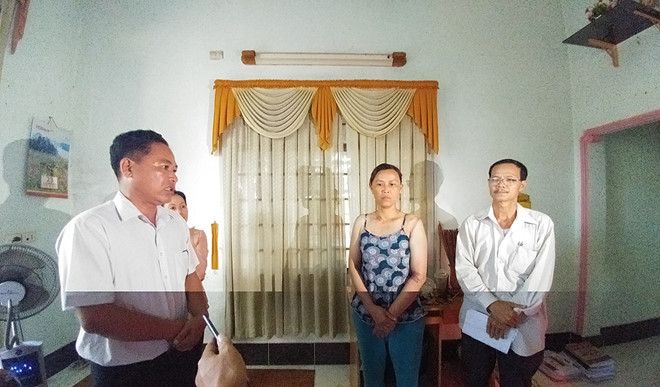 Lực lượng chức năng xin lỗi gia đình bà Loan. Ảnh: Tri thức trực tuyến |