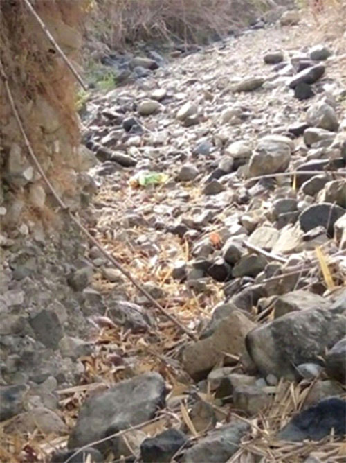 Sáng 14/5, tiếp tục đi theo hướng chú chó dẫn đường, mọi người đã phát hiện ra bé thi thể bé H. nằm úp sấp ngay dưới chân núi.