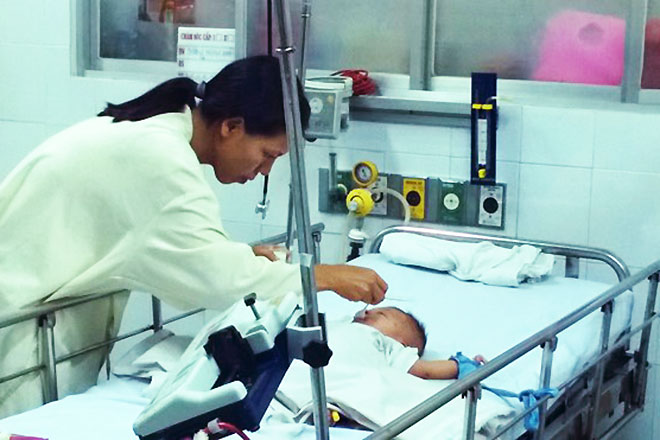 Lo lắng trước tình trạng của con, gia đình đã đưa bé Phát đến bệnh viện khám.