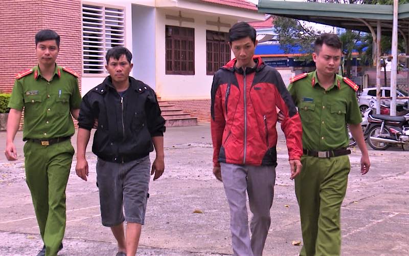 Hai đối tượng Sĩ và Cẩn tại Công an TP Buôn Ma Thuột - Ảnh: Báo Nhân Dân điện tử |
