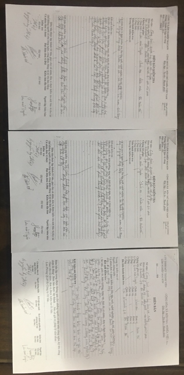 | Các biên bản do Công ty Lâm nghiệp Mai Sơn yêu cầu ông Nguyễn Huy Hiệp ngừng việc trồng, khai thác cây trên đất của ông Trần Xuân Sơn |