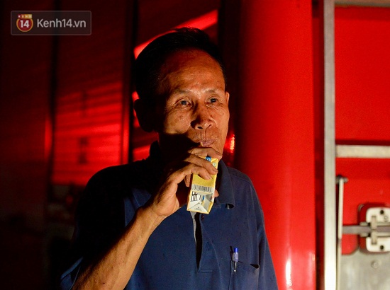 Ông Hiệp - chủ nhà trọ tình nghĩa bị cháy rụi từ 17h30 đến nửa đêm mới vội vàng hút tạm hộp sữa. |