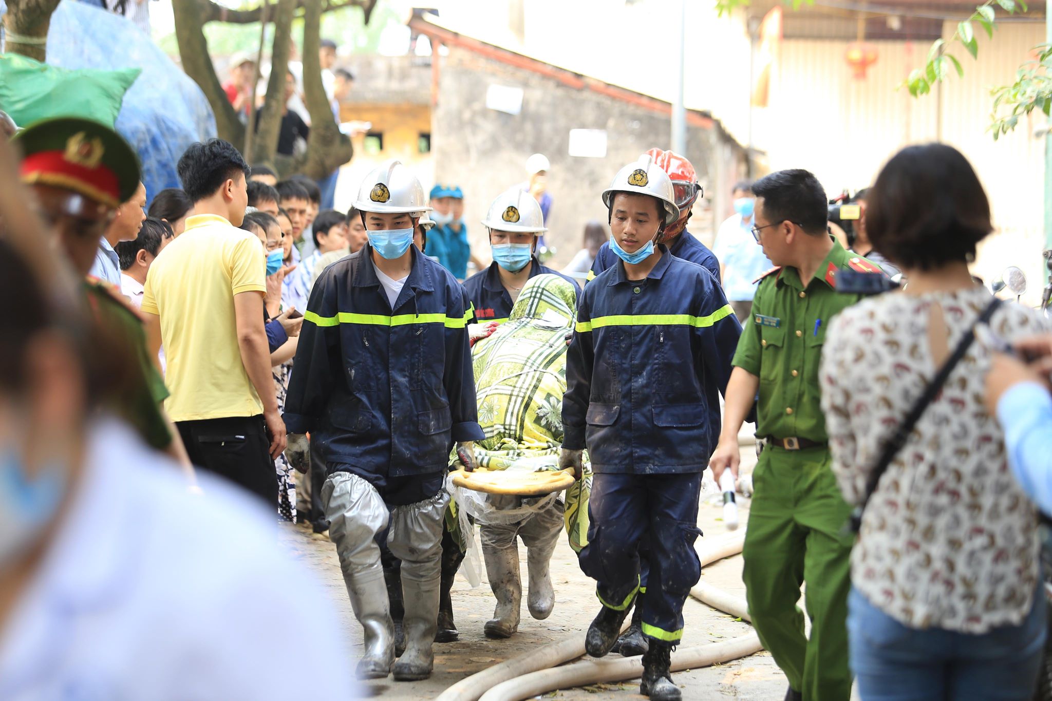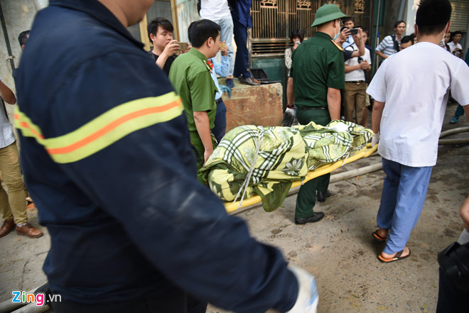 | Lực lượng chức năng đưa thi thể nạn nhân vụ cháy |