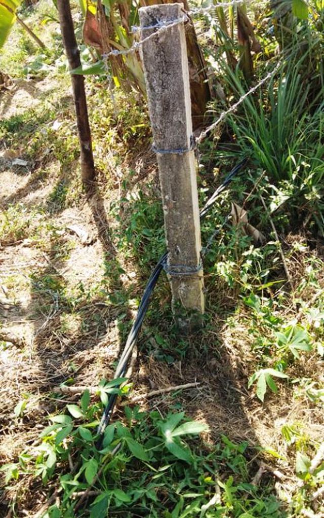 Tại hiện trường, người dân phát hiện phía dưới hàng rào thép gai có đường điện 3 pha bắt ngang qua, có đoạn nằm sát đất.