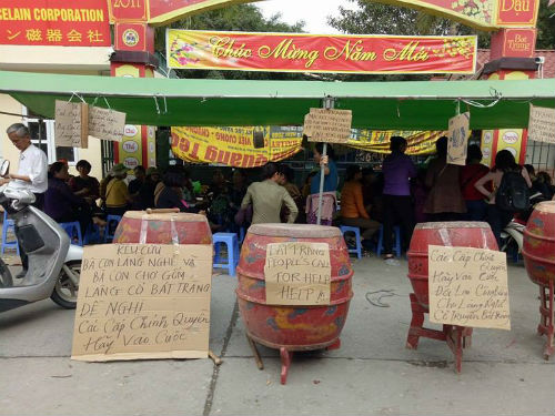 Bà con tập trung trước của chợ phản đôi việc công ty CP sứ Bát Tràng đóng cửa chợ. |