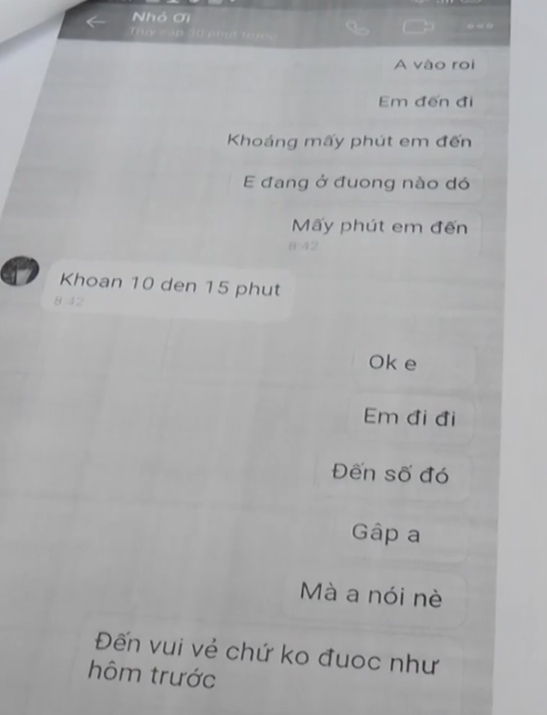 Trong các cuộc hội thoại cơ quan chức năng thu được, Vẽ luôn nhắn tin cho nạn nhân phải đến điểm hẹn sớm. Thậm chí, Vẽ nhắn liên tục như: “Khoảng mấy phút em đến”, “Em đang ở đường nào”,...