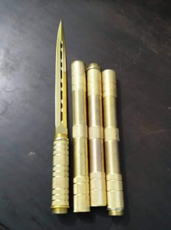 Vật dụng dùng để đâm thủng lốp xe - Ảnh: Công an cung cấp/ TTO |