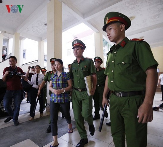 Bị cáo Diễm được áp giải đến phiên xét xử vụ án vợ giết chồng rồi phi tang ở Bình Dương. Ảnh: VOV |
