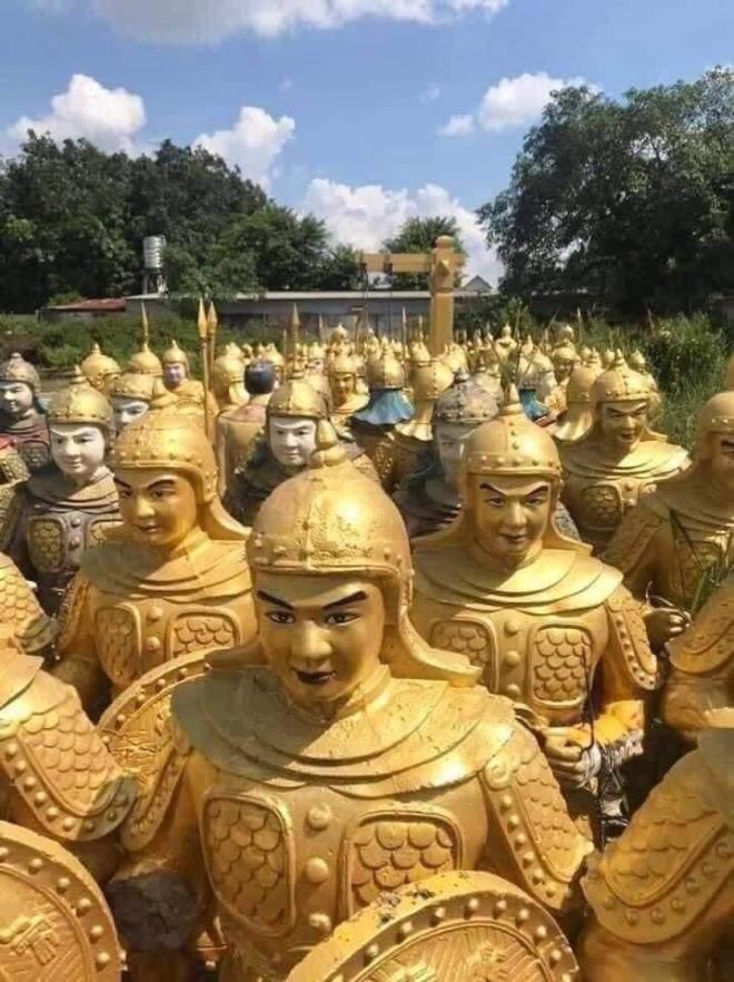 Các pho tượng quân lính mang quân phục thời phong kiến bị dư luận cho rằng có yếu tố Trung Quốc. Ảnh: VTC News |