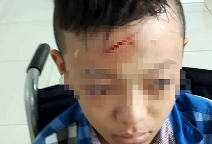 Vết thương ở đầu của bé Q.A. chảy rất nhiều máu. Ảnh: Giaoduc.net.vn. |