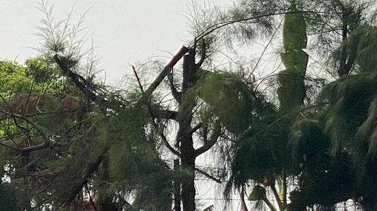 Đến 14h chiều cùng ngày, 4 học sinh lớp 9B trong đó có Nguyễn T.A. tiến hành việc cắt tỉa cành cây phi lao với dụng cụ là hai thang tre và hai cưa sắt.