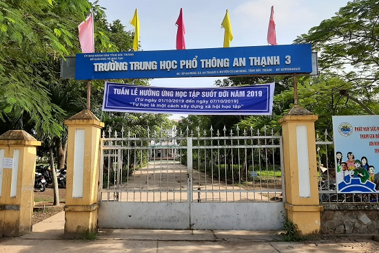 Trường THPT An Thạnh 3, nơi xảy ra sự việc học sinh xin đổi giáo viên vì bị đánh. Ảnh: Người Đưa Tin |