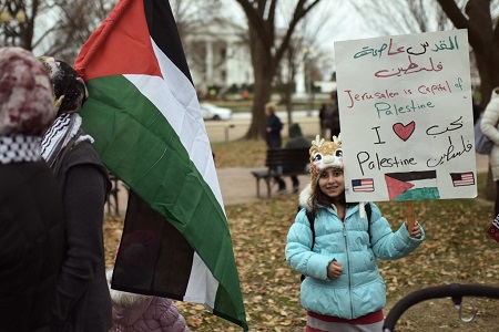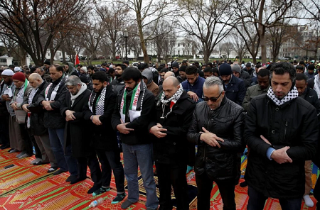 Đáp lại lời kêu gọi của các tổ chức Hồi giáo ở Mỹ, các tín đồ đạo Hồi đổ về Nhà Trắng ở thủ đô Washington. Họ mang theo các các biểu ngữ lên án sự chiếm đóng của Irsael tại Đông Jerusalem và Bờ Tây, đồng thời phản đối quyết định công nhận Jerusalem của Tổng thống Trump.