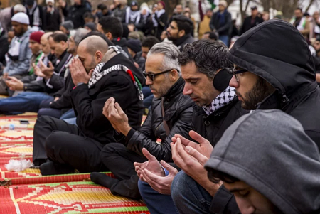 Ngày 8/12, bất bình trước quyết định công nhận Jerusalem là thủ đô của Israel của Tổng thống Mỹ, hàng trăm người Hồi giáo tập trung cầu nguyện trước khuôn viên Nhà Trắng.