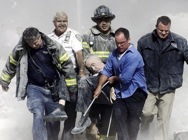 Người lính cứu hỏa Kevin Shea nằm nửa tỉnh nửa mê trong đống đổ nát sau vụ khủng bố 11/9. Anh Kevin là thành viên duy nhất sống sót trong đội cứu hỏa nơi anh công tác. Ảnh: Reuters |