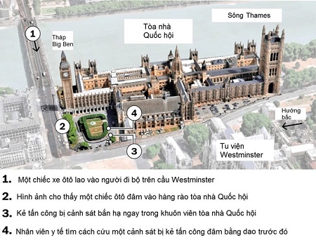 Vụ tấn công xảy ra ngay giữa trung tâm London - Đồ họa: Washington Post. |