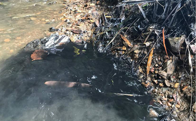 Nguồn nước ở sông Đà bị đổ trộm dầu thải gây ô nhiễm nghiêm trọng. Ảnh: NĐT |