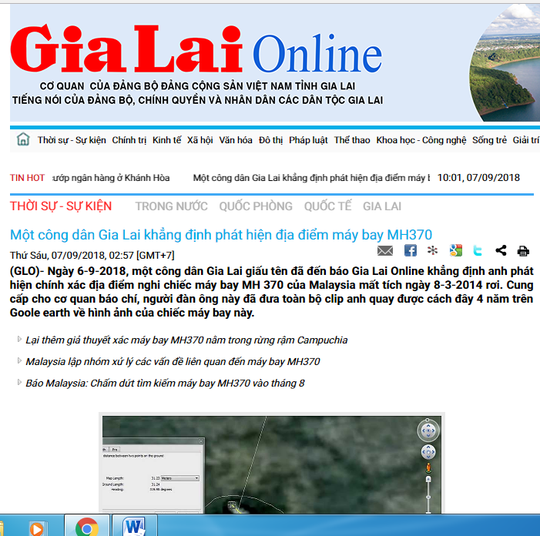 Trước đó, rạng sáng cùng ngày, Báo Gia Lai điện tử đã đăng tải bài viết cho rằng một công dân ở Gia Lai biết chính xác địa điểm máy bay MH370 mất tích cách đây 4 năm.