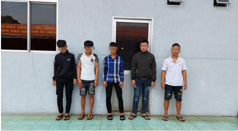 Nhóm thanh niên liên quan đến vụ việc tại cơ quan công an. Ảnh: Công an tỉnh Đồng Tháp |