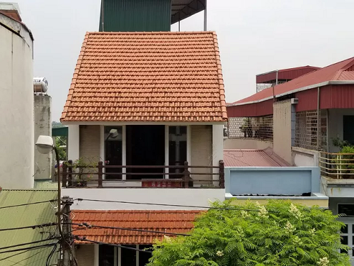 Tiệm vàng Tuấn Đạt nằm sát với những ngôi nhà xung quanh, trong đó, có hai ngôi nhà phía bên phải có độ cao tương đương ngôi nhà này. |