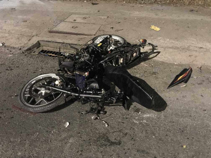 Người dân nghe tiếng động rất mạnh nên chạy ra xem thì phát hiện một chiếc xe máy nát vụn, cách đó hơn 20 m là một thanh niên nằm trên vỉa hè.