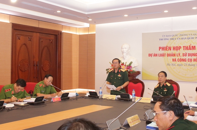 Đánh giá dự thảo Luật cơ bản đáp ứng được yêu cầu, đồng chí Phó Chủ tịch Quốc hội yêu cầu Bộ Công an, Bộ Quốc phòng, Bộ Công thương tiếp tục phối hợp nghiên cứu, rà soát, chỉnh lý dự án Luật; Thường trực Uỷ ban QP-AN khẩn trương hoàn thành báo cáo cáo thẩm định sơ bộ để trình Uỷ ban Thường vụ Quốc hội.